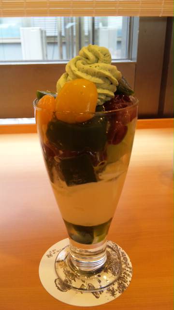 記憶を頼りに都路里に行ったんだけど、ビル改装中で店舗移動してた。